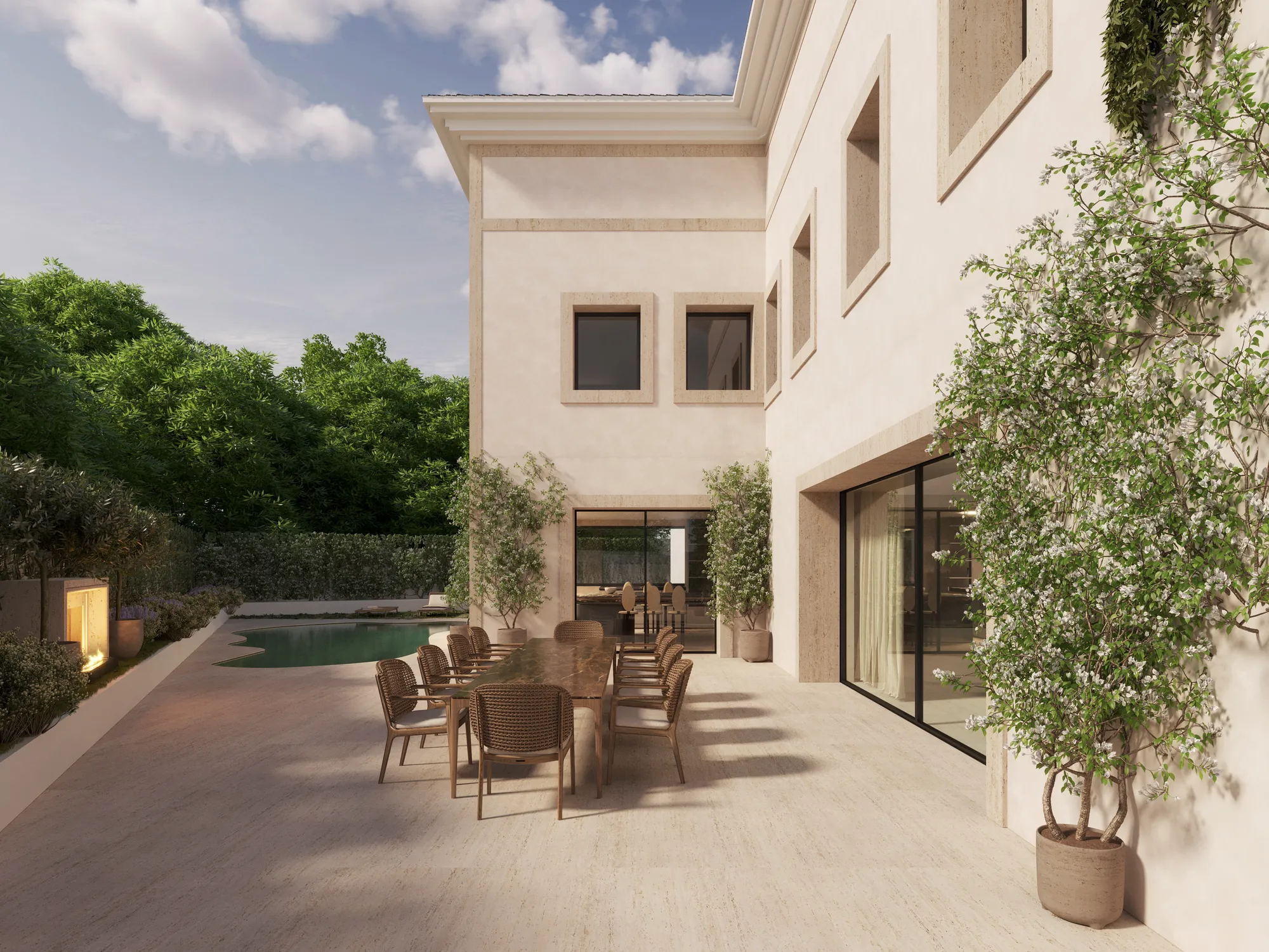 Private gardens and expansive floor-to-ceiling windows blur the boundaries between the indoors and outdoors, creating perfect harmony across the different spaces.
